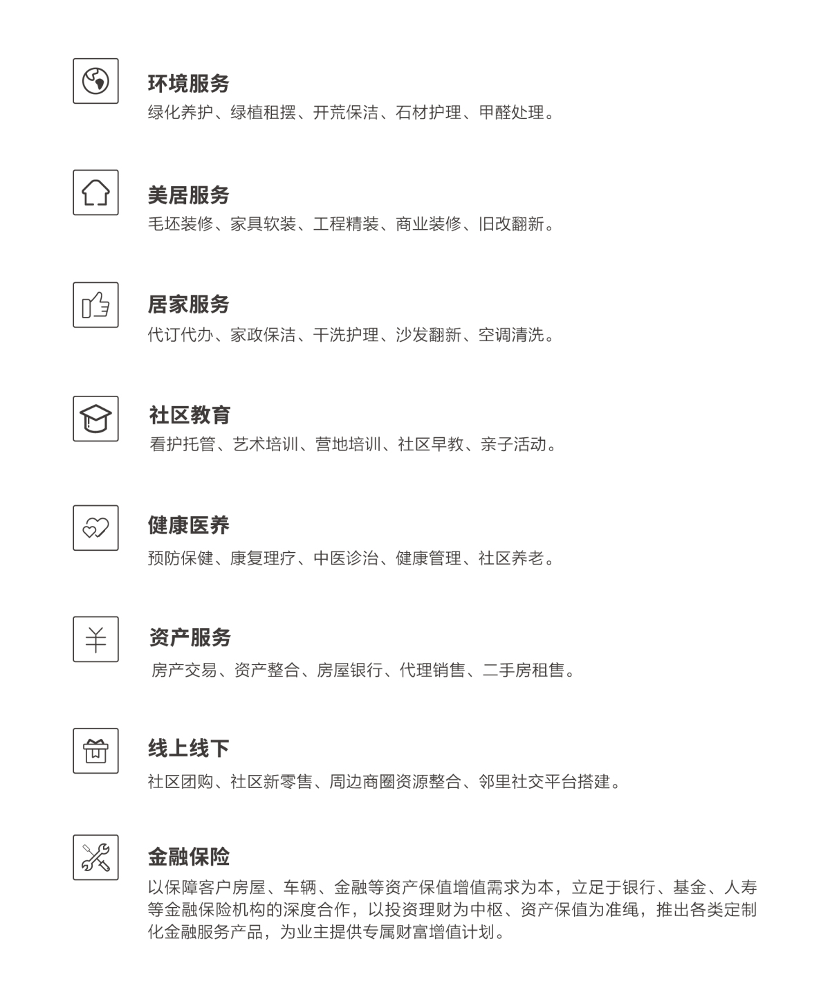 一套东方特色服务体系——融合传统人文关怀和现代专业服务理念 一套星级管家评定&考核机制——以客户满意度评价为核心核定星级等级 一批校企合作定制化的“雏鹰计划”——引进人才打造方圆管家专业队伍 一套完善的培训赋能体系——结合职业发展通路采取【进阶培训】 一个高品质服务品牌——第三方客户满意度达98%